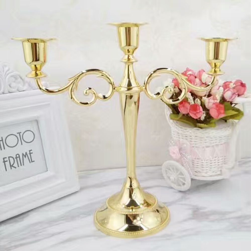 Amazon Com Gototop 3 Arms Candle Holder Gold Retro 3 Branches Candle Stick Stand Metal Candle Holder European Style Candelabra Wedding Candlestick Dinner Home Decor Gift Home Kitchen