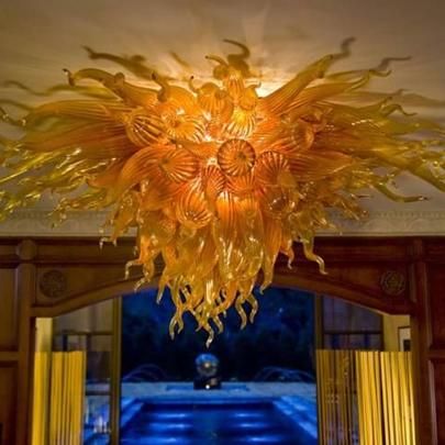 2020 Amber Glass Flower Ceiling Light Chandelier Led Light Wonderful Design Hotel Home Decoration Modern Style Hand Blown Glass Ceiling Light From Girbanart 601 01