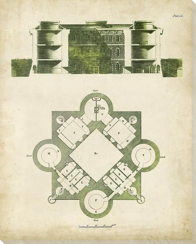 Architectural Blueprint I Wrapped Canvas Giclee Art Print Wall Art